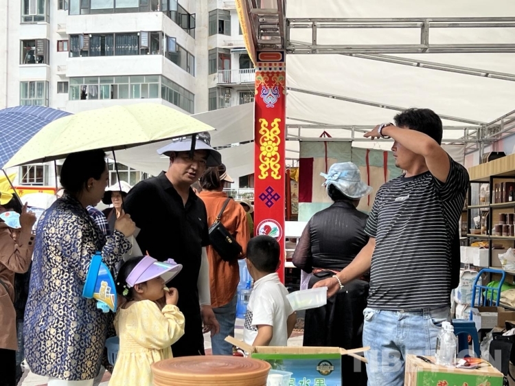 牦牛肉、酥油、酸奶、奶渣等畜牧業(yè)產(chǎn)品;青稞、蕎麥、糌粑、核桃油等農(nóng)產(chǎn)品;唐卡、服飾、藏醫(yī)藥、木碗等非遺產(chǎn)品等等,各種各樣的特色產(chǎn)品讓人目不暇接,游客們流連于各個(gè)展銷點(diǎn)選購心儀的產(chǎn)品,現(xiàn)場已然一幅熱鬧的景象。