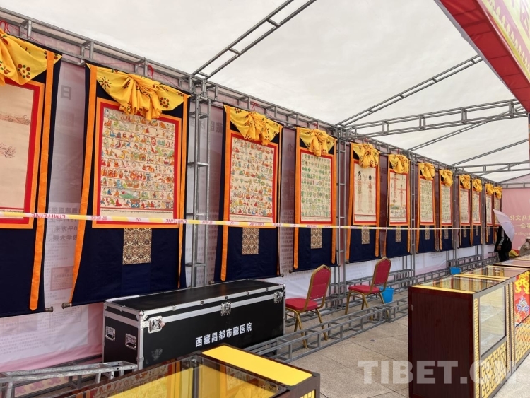 圖為表現(xiàn)藏醫(yī)學(xué)內(nèi)容的康卡展區(qū) 攝影:德吉卓瑪