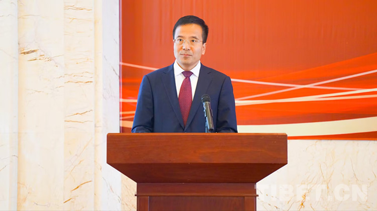 圖為西藏自治區(qū)黨委宣傳部副部長、西藏自治區(qū)社會科學(xué)院黨組書記孫向軍在第十六屆“中國講壇”現(xiàn)場致辭 攝影:趙振宇