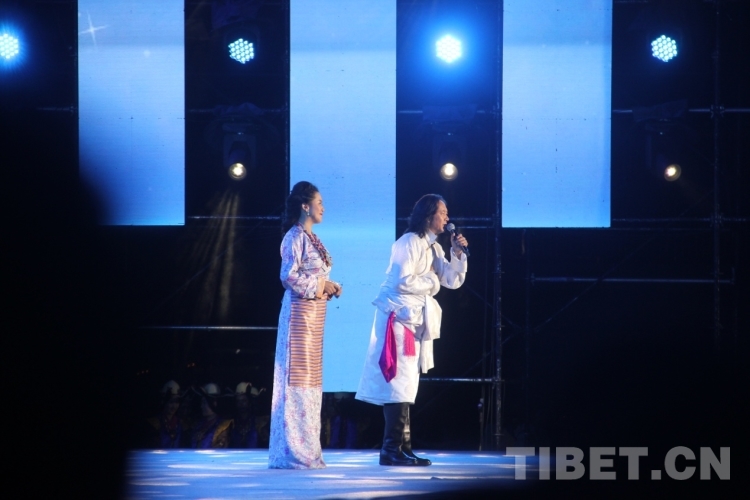 圖為歌手次旦晉美、白瑪拉姆演唱《千年的愛》 攝影:旦曲