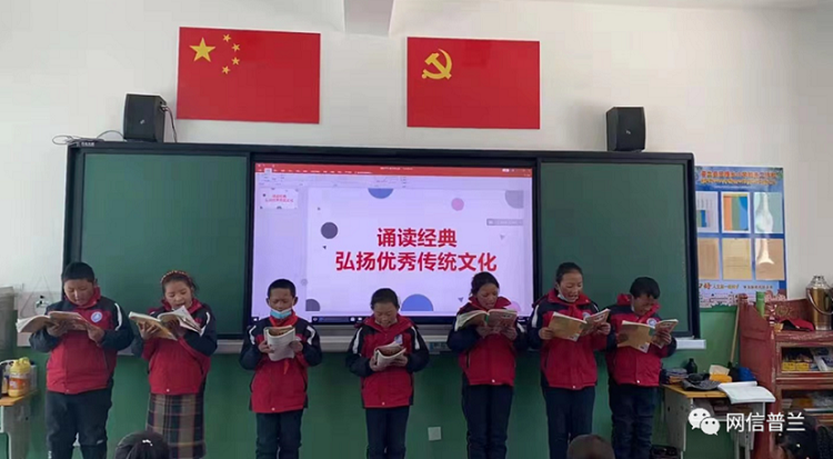 圖為巴嘎鄉(xiāng)小學(xué)舉辦誦讀經(jīng)典活動 圖片來源:網(wǎng)信普蘭