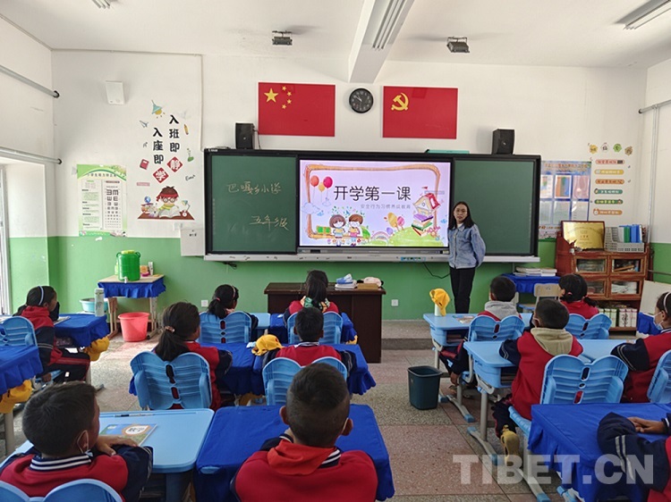 圖為巴嘎鄉(xiāng)小學(xué)開學(xué)第一課 圖片由西藏民族大學(xué)財(cái)經(jīng)學(xué)院提供