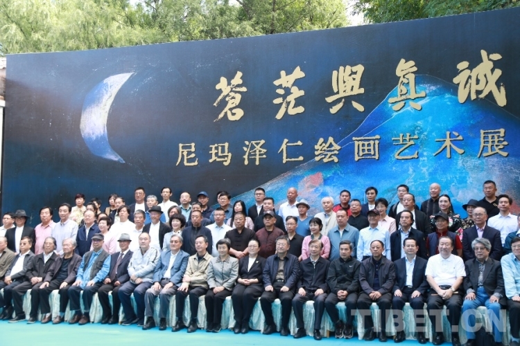 圖為尼瑪澤仁繪畫藝術(shù)展的開幕式合影 攝影:王妍丹