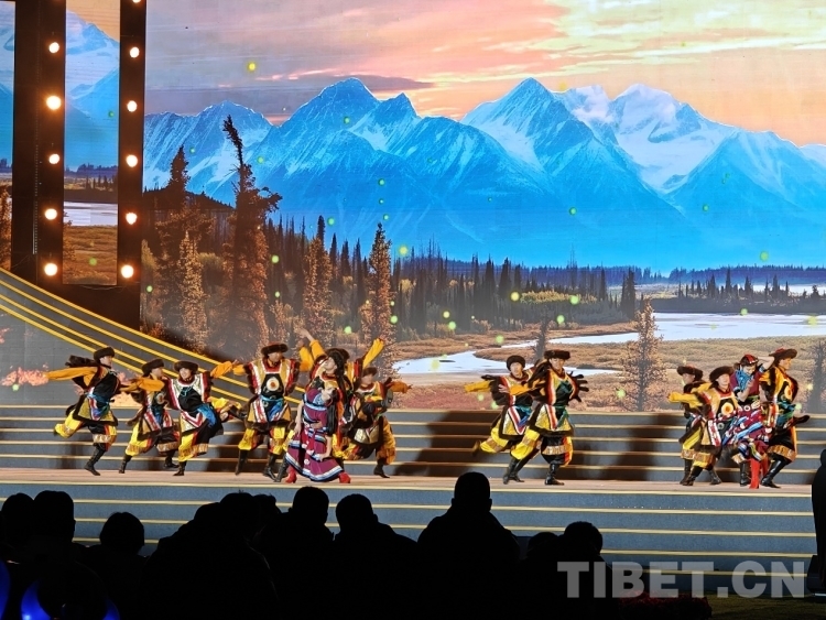 圖為文藝演出舞蹈《飛弦踏青》表現(xiàn)雪域兒女踏著新時(shí)代的節(jié)奏,快步邁向美好未來的信心與激情 攝影:次旦拉姆