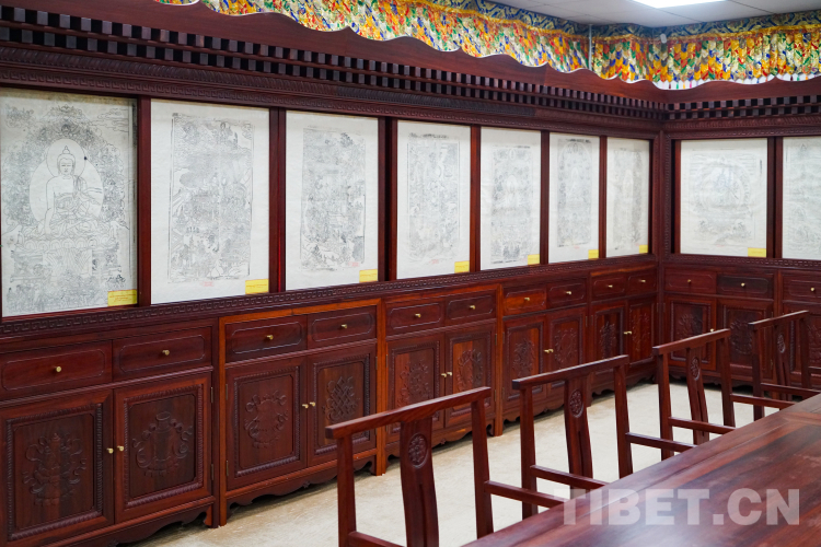 圖為西藏民族大學(xué)渭城校區(qū)新圖書館內(nèi)的藏學(xué)信息研究中心所展陳的木刻版畫 攝影:趙振宇