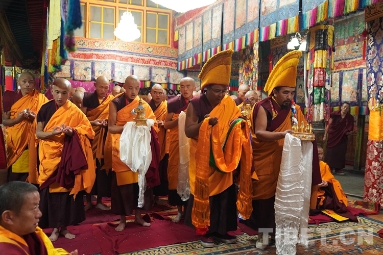 中國西藏網(wǎng)訊 11月4日,即藏歷九月二十二日是藏傳佛教傳統(tǒng)的“降神節(jié)”,降神節(jié)藏語稱“拉波堆慶”。在這特殊的日子里,全國政協(xié)常委、中國佛教協(xié)會副會長、中國佛協(xié)西藏分會會長班禪額爾德尼·確吉杰布,為日喀則市江孜縣重孜寺生欽·旦巴熱杰活佛授予比丘戒暨為扎什倫布寺部分年輕僧人傳授沙彌戒儀式在扎什倫布寺拉讓殿舉行。