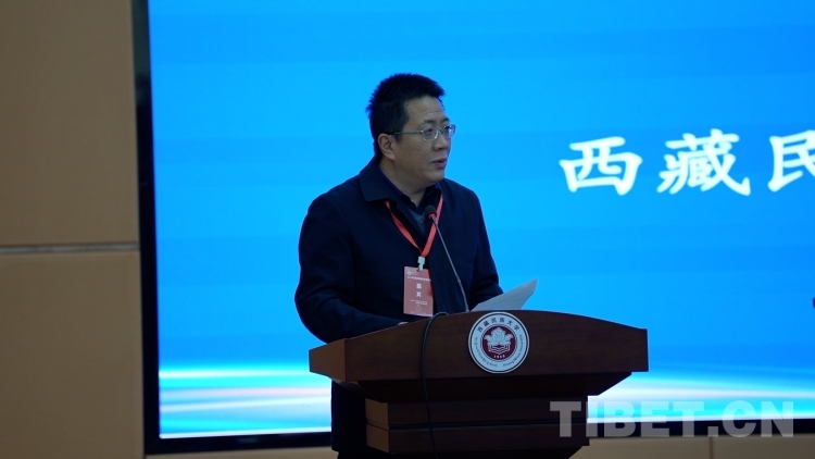 圖為西藏民族大學(xué)黨委副書記、校長羅旺次仁代表學(xué)校致辭 攝影:陳浩力