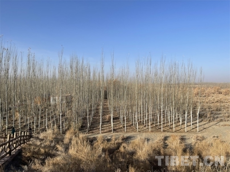 圖為沙漠綠洲上人們愛心認(rèn)領(lǐng)的樹林 攝影:王妍丹