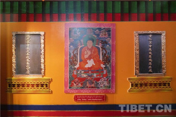 康熙皇帝照封五世達賴之例,冊封五世班禪·羅桑益西為“班禪額爾德尼”,并賜金冊金印,從此班禪世系稱為班禪額爾德尼,成為藏傳佛教格魯派第二大活佛轉(zhuǎn)世系統(tǒng)。五世班禪額爾德尼的金冊金印、乾隆皇帝欽命宮廷畫家繪制的六世班禪額爾德尼·羅桑巴丹益希畫像、七世班禪額爾德尼·丹貝尼瑪在擊退廓爾喀入侵后所立的《皇圖鞏固》青石碑……一件件文物、一幅幅照片,生動講述著歷代班禪及扎什倫布寺和中央政府的密切聯(lián)系與往來,講述著歷代班禪和扎什倫布寺在維護國家主權(quán)與領(lǐng)土完整以及促進西藏社會發(fā)展方面所起的重要作用。