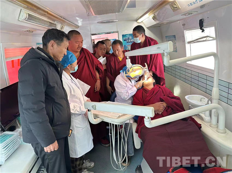 圖為扎什倫布寺僧人開展口腔檢查 圖由扎什倫布寺提供
