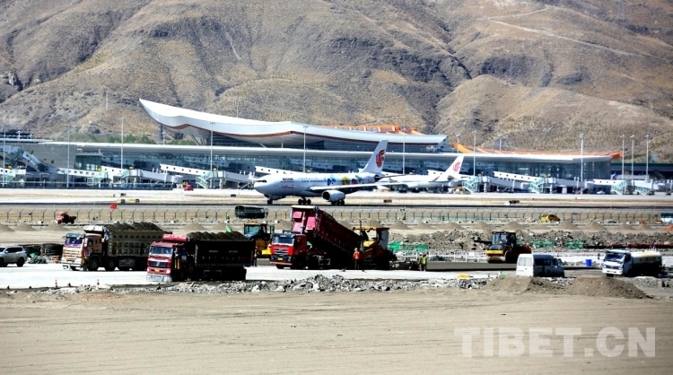 資料圖:今年4月拉薩貢嘎機(jī)場(chǎng)新建第二跑道工程建設(shè)現(xiàn)場(chǎng)