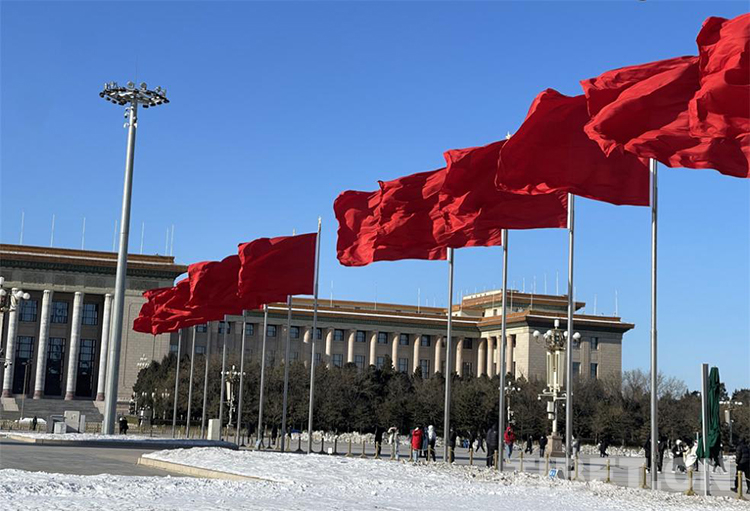 圖為天安門廣場上迎風飄揚的紅旗 攝影:王妍丹