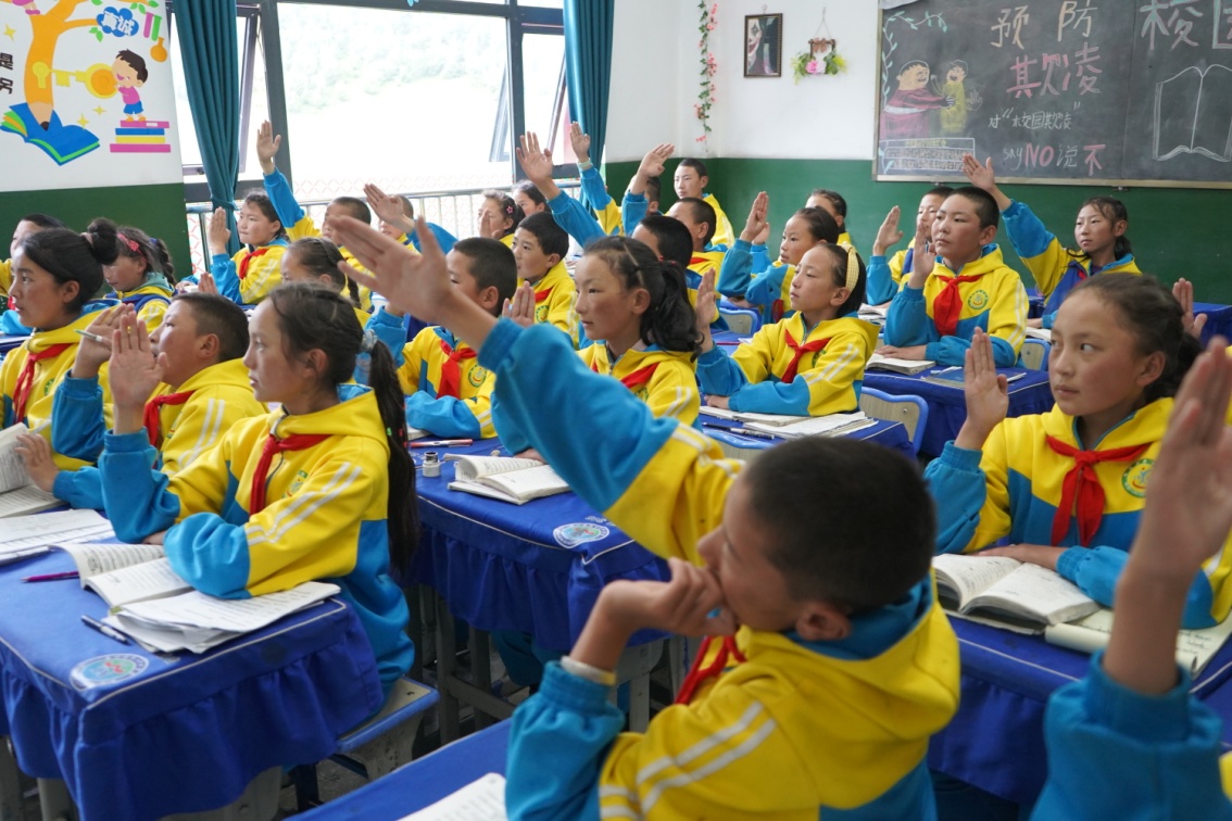 圖為西昌鄉(xiāng)小學(xué)學(xué)生在課堂上舉手回答問(wèn)題 攝影:吳建穎