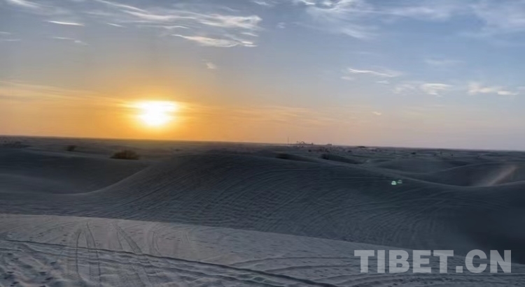 與沙漠落日相遇這一刻,用照片定格下來(lái)。從此對(duì)“大漠孤煙直,長(zhǎng)河落日?qǐng)A”的意境有了實(shí)感,我們記住了這獨(dú)特的美麗,也記住了沙漠邊的人們擁有著莫大的生活熱情。