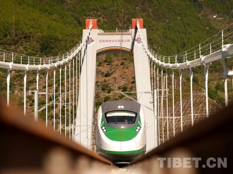 圖為麗香鐵路的列車(chē)正在通過(guò)虎跳峽金沙江鐵路大橋 攝影:周濤