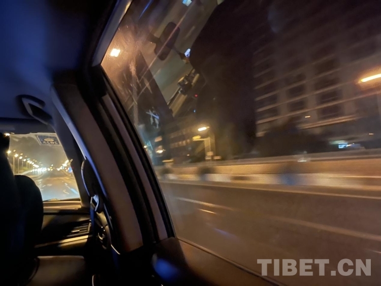 圖為凌晨三點(diǎn)趕往首都機(jī)場(chǎng)的車(chē)上 攝影:王妍丹