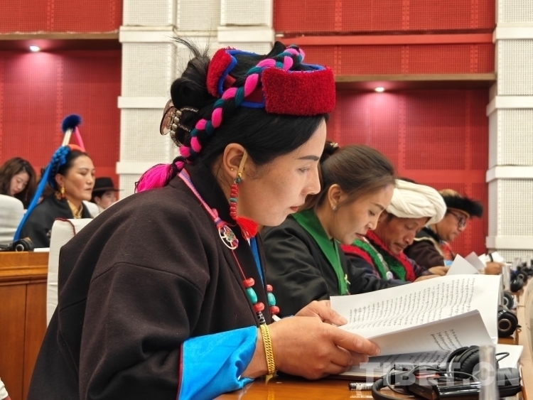 圖為開幕會現(xiàn)場委員在認(rèn)真審閱藏文版會議資料 攝影:次旦拉姆