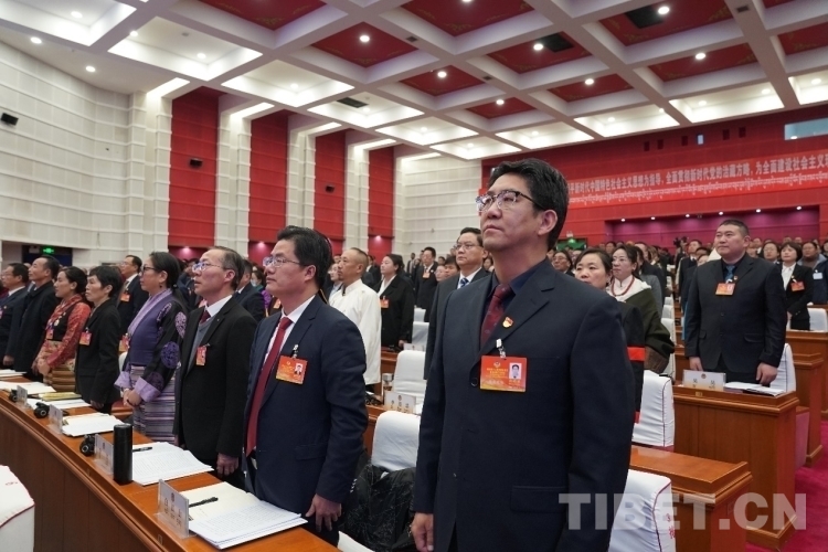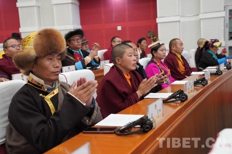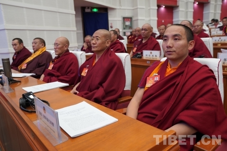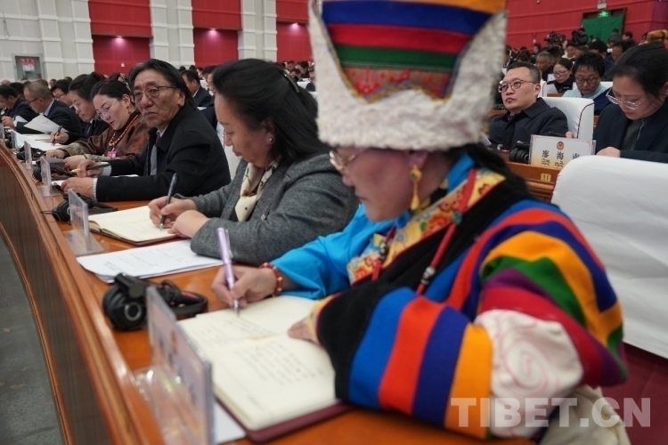 圖為開幕會現(xiàn)場政協(xié)委員在認(rèn)真聽取各項(xiàng)報告 攝影:次旦拉姆