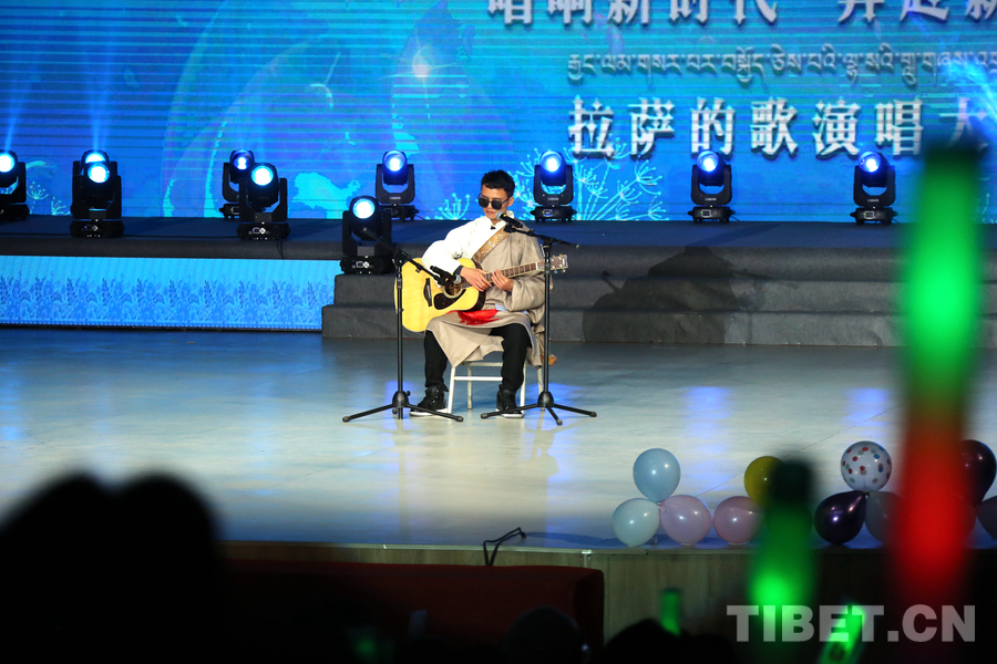 資料圖:視障人士拉巴桑珠就讀于拉薩師范高等專科學(xué)校,他在拉薩師范高等??茖W(xué)校校園“十佳歌手”大賽中獲得冠軍