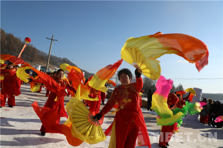 滿是積雪的雪原鄉(xiāng)村煥然一新,整整齊齊的迎賓雪人站立路旁,彩旗迎風(fēng)招展,紅彤彤的燈籠飄在空中,遠(yuǎn)遠(yuǎn)就看到東北大秧歌熱情地在村子的街道上舞動。