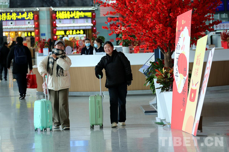 資料圖:拉薩貢嘎機(jī)場(chǎng)內(nèi)節(jié)日氛圍濃厚 游客愉快出行