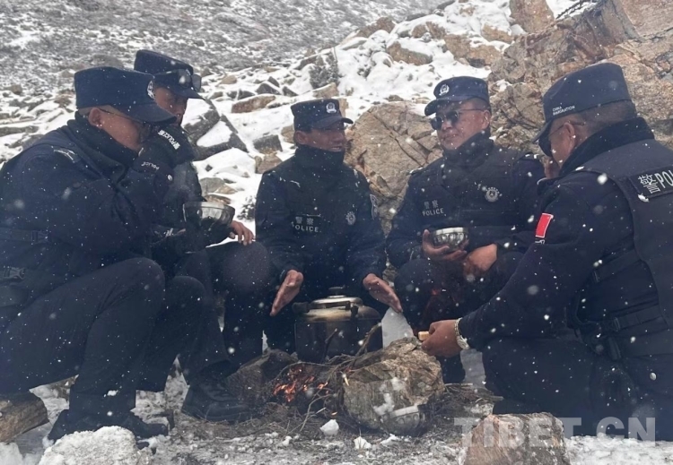 圖為民警在巡邏踏查途中生火煮茶 攝影:格熱
