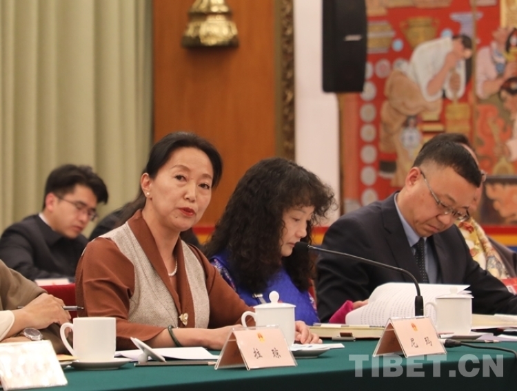 圖為尼瑪在十四屆全國人大二次會議西藏代表團(tuán)開放團(tuán)組會議上發(fā)言