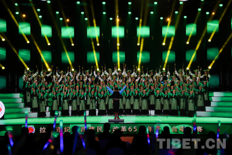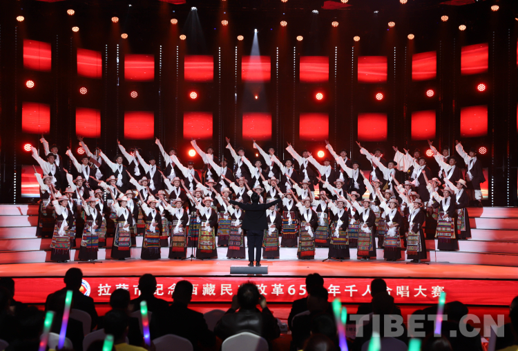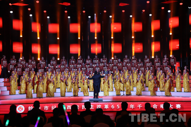 中國(guó)西藏網(wǎng)訊 3月27日晚,《盛世中國(guó) 幸福西藏》拉薩市紀(jì)念西藏民主改革65周年千人合唱大賽在拉薩師范高等專(zhuān)科學(xué)校體育館舉行。