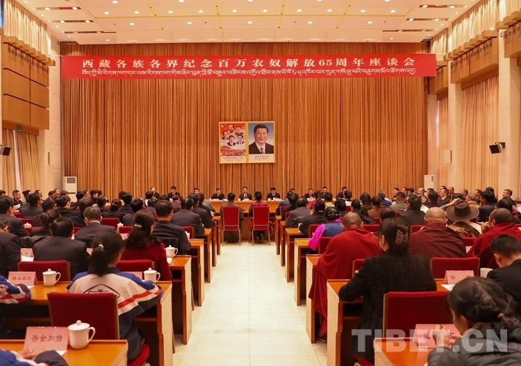 中國西藏網(wǎng)訊 3月28日,西藏各族各界紀念百萬農(nóng)奴解放65周年座談會在拉薩舉行。會上,翻身農(nóng)奴代表、愛國統(tǒng)戰(zhàn)人士及其后代代表、學(xué)生代表、黨外知識分子代表、宗教界代表等紛紛發(fā)言。