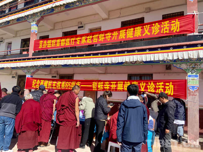 中國西藏網(wǎng)訊 “收到今天有北京醫(yī)療專家過來義診的消息,我一大早就過來了。身體平時(shí)沒什么大的毛病,就想著借此機(jī)會(huì)檢查一下,畢竟年紀(jì)大了。”66歲的哲蚌寺僧人加參高興地說。為了讓哲蚌寺僧人和周邊民眾在家門口就能享受到優(yōu)質(zhì)的醫(yī)療服務(wù),傳播健康生活理念,提高健康意識(shí),3月29日,西藏自治區(qū)人民政府駐北京辦事處(以下簡稱:京辦)組織北京11家重點(diǎn)醫(yī)院的12名醫(yī)療專家走進(jìn)位于拉薩市城西的哲蚌寺,開展“踔厲奮發(fā)擔(dān)使命 送醫(yī)進(jìn)藏暖民心”義診活動(dòng),得到僧人和群眾的一致稱贊。