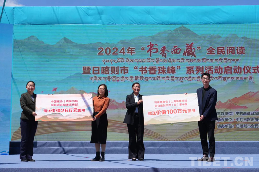 啟動儀式現(xiàn)場,公布了榮獲首屆西藏“書香單位”“最美農(nóng)(牧)家書屋”“最美閱讀推廣人”榮譽稱號的獲獎名單,并向相關代表進行頒獎授牌。中國出版協(xié)會、韜奮基金會、線裝書局有限公司及上海鷹角網(wǎng)絡科技有限公司向西藏自治區(qū)黨委宣傳部和日喀則市委宣傳部贈書。