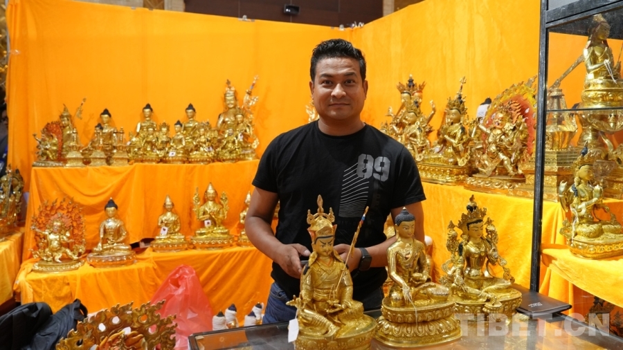 Bikram來自尼泊爾首都加德滿都,十年前來過拉薩,深深被這座城市所吸引,這次通過中外商品展銷會(huì)再次來到一直向往的拉薩,他非常開心?!拔覀兡岵礌柕氖止に嚻吩谌澜绯雒@次我們從尼泊爾帶來的有唐卡、佛像、毛毯等,都是全手工制作的,希望在此次展銷會(huì)能夠得到西藏消費(fèi)者的支持與喜愛?!?/p>