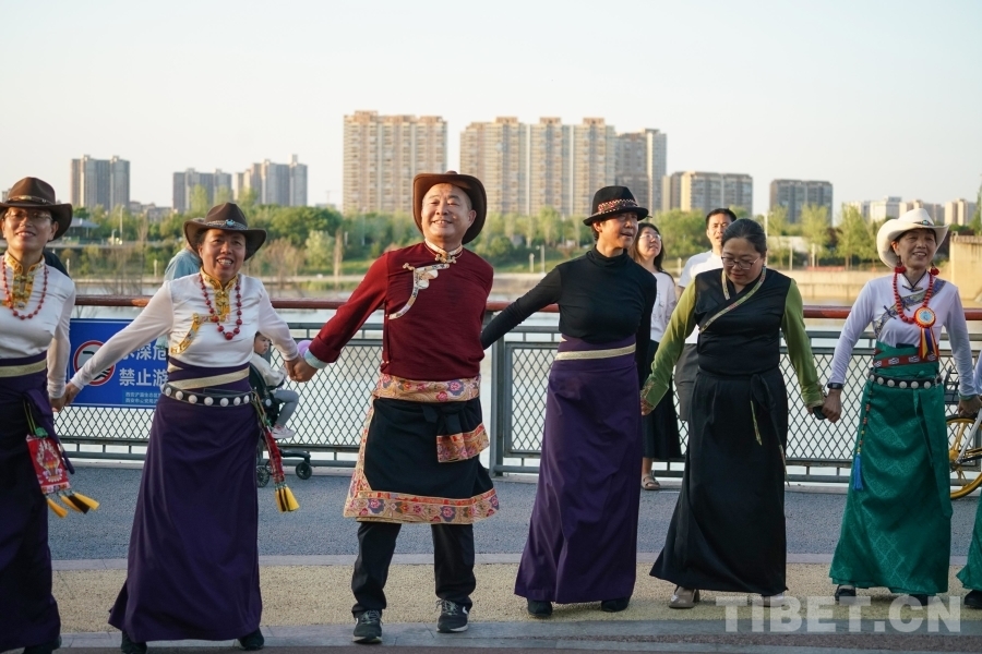 中國(guó)西藏網(wǎng)訊 近日,由同心圓傳統(tǒng)藏舞會(huì)堂舉辦的傳統(tǒng)藏舞推廣展演活動(dòng)在西安浐灞半島舉辦,來自西藏、青海、四川等地的多位藏舞推廣傳承人、民間音樂創(chuàng)作人與藏舞愛好者齊聚西安,他們身著藏族傳統(tǒng)服飾,邊唱邊跳,《歡迎你們到來》《吉祥的哈達(dá)》《放牧歌》……一曲接著一曲,大家在歌聲和歡呼聲中感受著藏族文化的無限魅力!(中國(guó)西藏網(wǎng) 記者/呂靜 陳浩力)