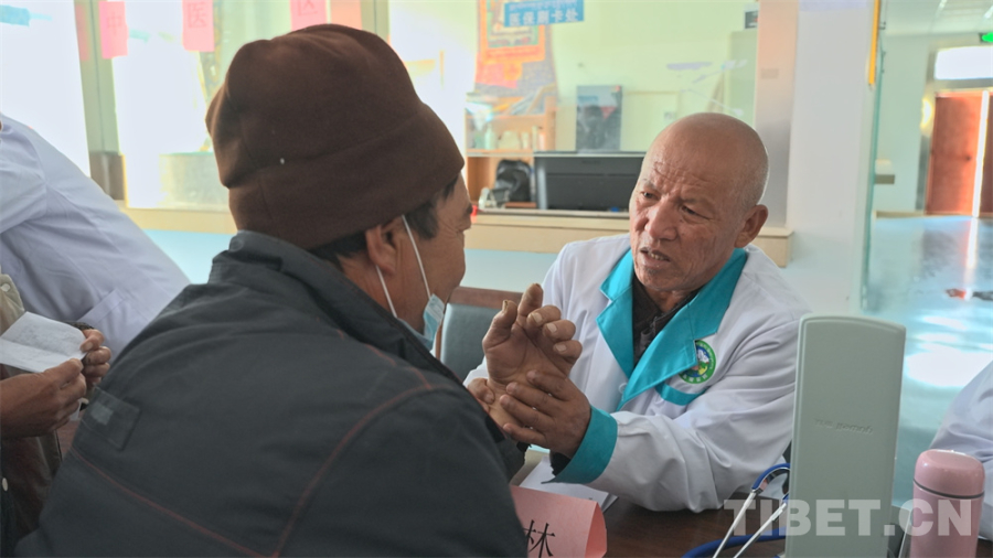 圖為藏醫(yī)專家正在為患者把脈診治 攝影:達(dá)瓦扎巴