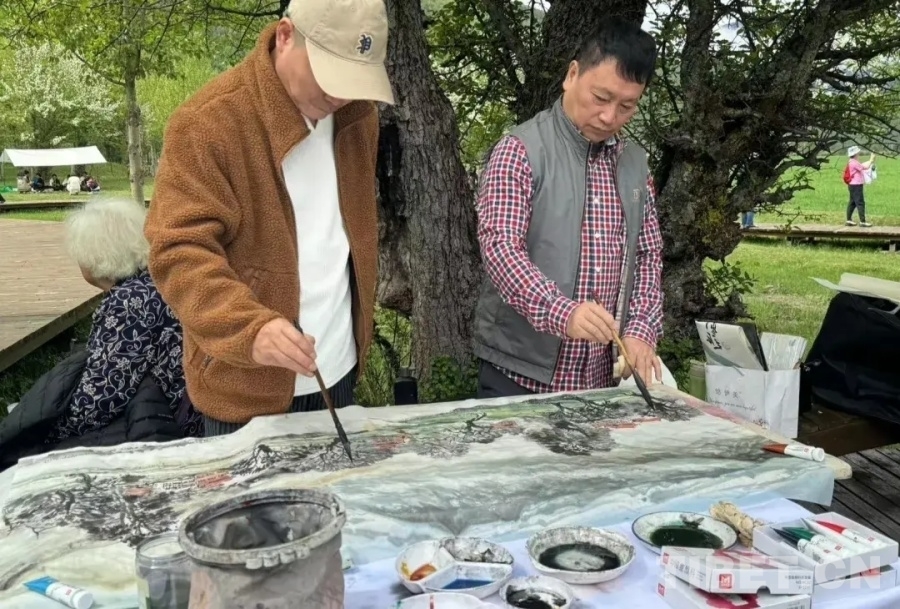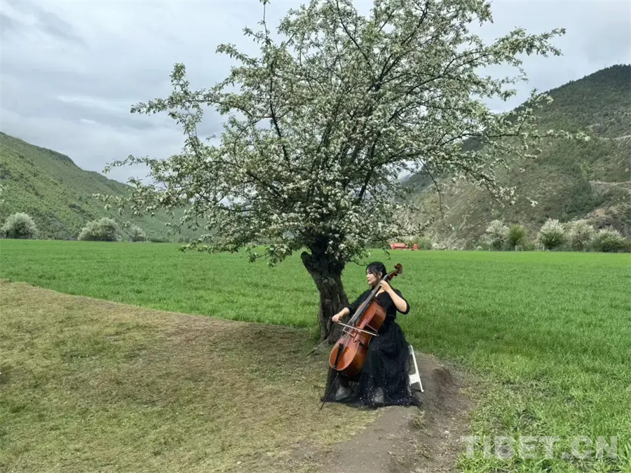 悠揚(yáng)的樂(lè)聲自林間傳來(lái),沿著步道往深處走去,一場(chǎng)特別的演奏會(huì)正在進(jìn)行。枝頭海棠盛放,樹(shù)下游人如織,鋼琴、大提琴、笛子等各色樂(lè)器奏出的曲調(diào)在貢嘎海棠的映襯下更顯別樣風(fēng)味,來(lái)自西安的韓先生細(xì)細(xì)聆聽(tīng)木雅傳統(tǒng)非遺口弦的演奏后不禁感嘆道,“太美了!這個(gè)活動(dòng)將音樂(lè)與貢嘎海棠花海巧妙融合,讓我感受到一種別樣的人與自然共生的和諧?!?/p>