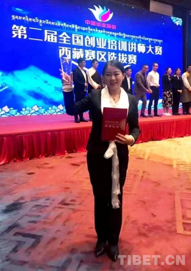 圖為付燕在第二屆全國創(chuàng)業(yè)培訓講師大賽西藏賽區(qū)選拔賽中獲獎