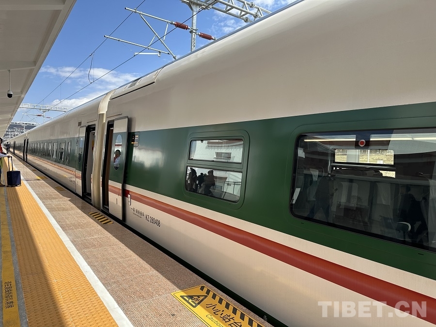 圖為復(fù)興號(hào)動(dòng)車(chē)組行駛在滇藏鐵路麗香段上 迪慶日?qǐng)?bào)社供圖