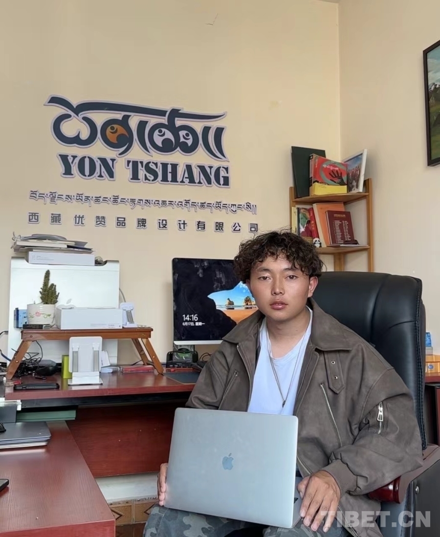次仁頓珠是學(xué)院2022年平面設(shè)計(jì)專業(yè)的畢業(yè)生,也是全國(guó)第一屆職業(yè)技能大賽“西部技能之星”獲得者,我們到訪時(shí)他剛好回校做單元展。次仁頓珠畢業(yè)后和四個(gè)合伙人一起在拉薩創(chuàng)業(yè),創(chuàng)辦了優(yōu)贊品牌設(shè)計(jì)有限公司,主要業(yè)務(wù)包括產(chǎn)品包裝設(shè)計(jì)、logo設(shè)計(jì)和品牌設(shè)計(jì)。創(chuàng)業(yè)伊始全靠幾個(gè)合伙人自己出去推銷,如今經(jīng)過(guò)老客戶口口相傳,很多客戶主動(dòng)來(lái)找他們,生意越來(lái)越好?!皠?chuàng)業(yè)兩年多,我大概分紅了40多萬(wàn),今年我們幾個(gè)合伙人都買了車。未來(lái)我們計(jì)劃擴(kuò)大公司的店面,好好裝修,然后開(kāi)始線上直播,以后在拉薩買了房子從昌都接?jì)寢屢黄饋?lái)住?!贝稳暑D珠向我們介紹,笑容中帶著羞澀與驕傲。
