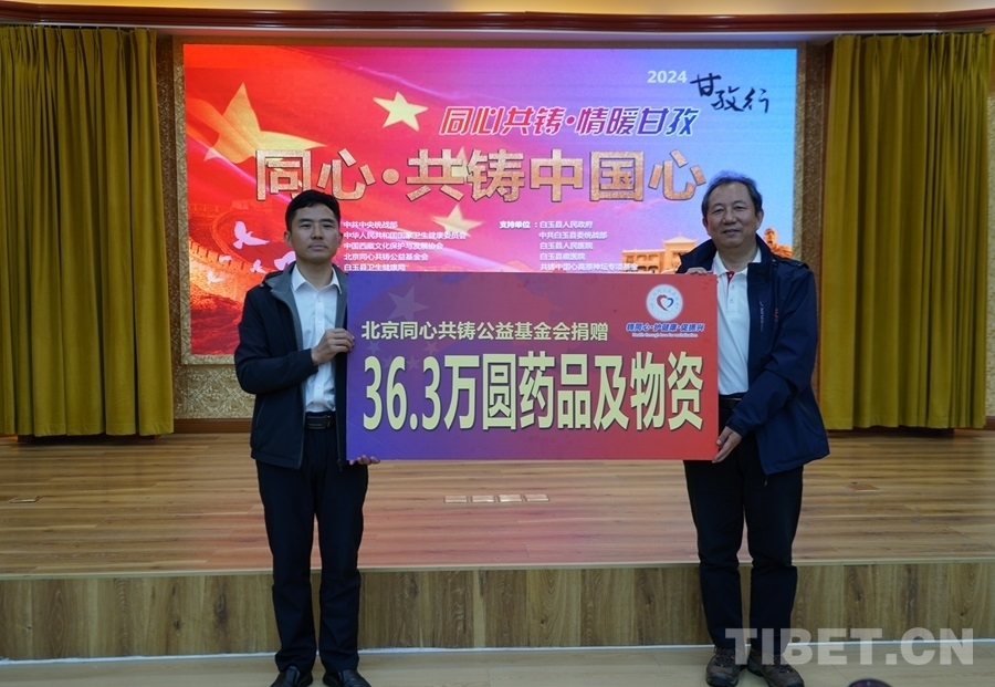 會(huì)議開始,與會(huì)人員一同觀看了“同心共鑄·情暖甘孜——‘同心·共鑄中國心’2024甘孜行”活動(dòng)直播。隨后,白玉縣委書記劉堰,專家團(tuán)團(tuán)長、清華長庚醫(yī)院神經(jīng)外科主任醫(yī)師王貴懷分別致辭?,F(xiàn)場(chǎng)還舉行了捐贈(zèng)儀式和授旗儀式。