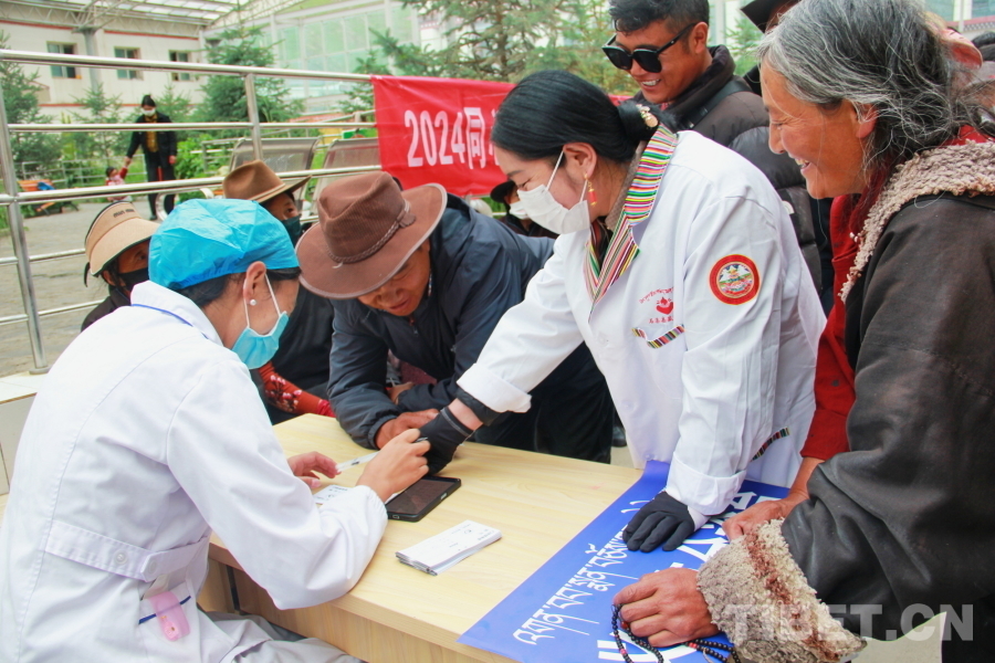 圖為2024“同心·共鑄中國心”甘孜行大型公益活動石渠縣義診現(xiàn)場護士正在為候診群眾分診 攝影:劉莉