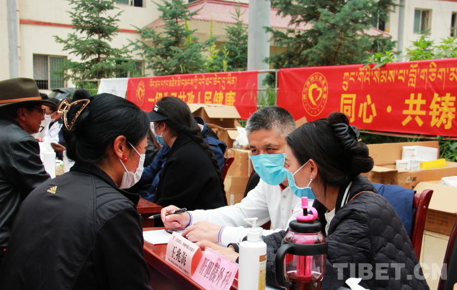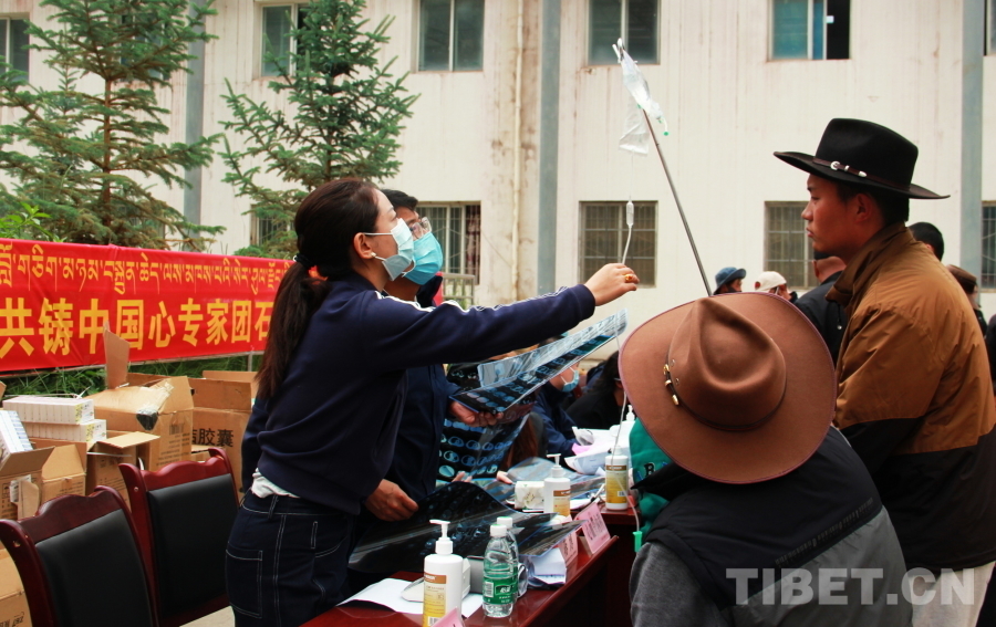 圖為2024“同心·共鑄中國心”甘孜行大型公益活動石渠縣義診現(xiàn)場,醫(yī)療專家正在查看患者用藥情況 攝影:劉莉