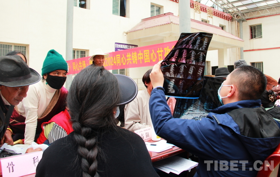圖為2024“同心·共鑄中國心”甘孜行大型公益活動石渠縣義診現(xiàn)場,中國人民解放軍總醫(yī)院第一醫(yī)學中心骨科副主任醫(yī)師高陽正在查看患者帶來的片子 攝影:劉莉