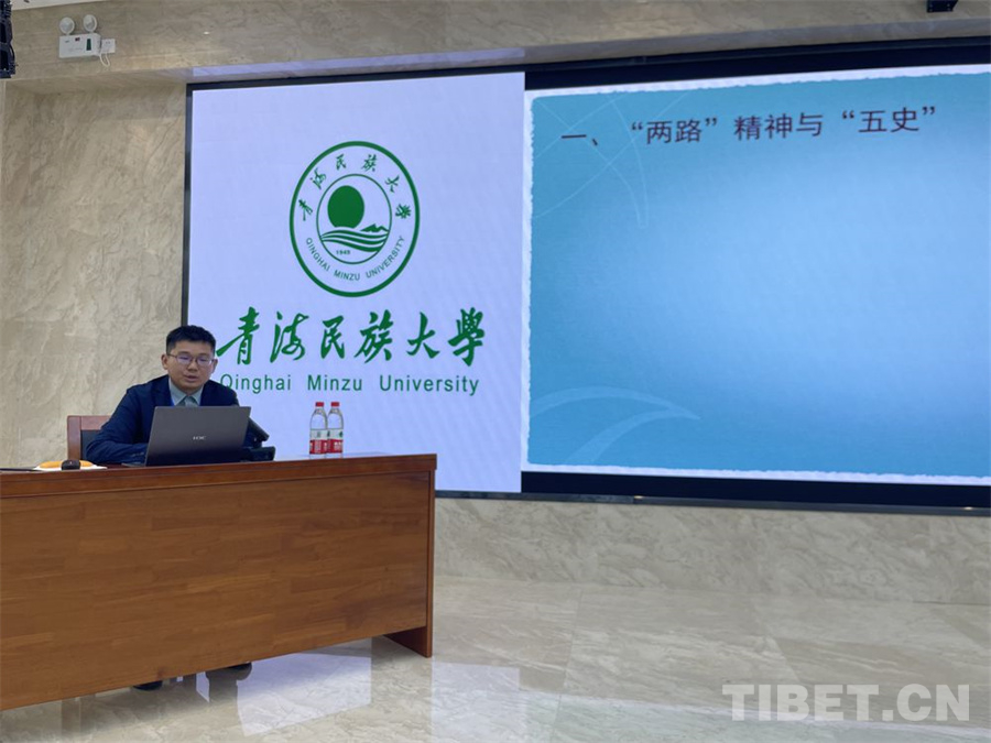 青海師范大學歷史學院張中磊副教授,以《淺談“兩路”精神融入高校歷史教學的意義與實踐路徑》為題,闡釋了“兩路”精神對學生的“五史”教育、培養(yǎng)青海學生的家國情懷、增強民族團結的意義,以及具體實踐路徑。