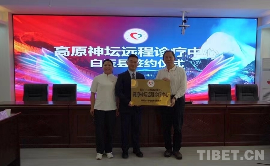 中國(guó)西藏網(wǎng)訊 7月8日下午,“同心·共鑄中國(guó)心”高原神壇遠(yuǎn)程診療中心白玉縣座談會(huì)在甘孜州白玉縣人民醫(yī)院舉行。白玉縣委常委、統(tǒng)戰(zhàn)部長(zhǎng)約來,縣衛(wèi)生健康局、縣人民醫(yī)院相關(guān)負(fù)責(zé)人,“高原神壇專項(xiàng)基金”專家組成員清華長(zhǎng)庚醫(yī)院神經(jīng)中心主任王貴懷、北京天壇醫(yī)院神經(jīng)外科原主任魏希發(fā)、北京豐臺(tái)醫(yī)院副院長(zhǎng)神經(jīng)外科主任馬延山、國(guó)家電網(wǎng)北京電力醫(yī)院神經(jīng)外科主任宗淼、首都醫(yī)科大學(xué)北京首鋼醫(yī)院神經(jīng)外科主任高峰等出席會(huì)議。座談會(huì)期間,與會(huì)人員就“高原神壇遠(yuǎn)程診療中心”項(xiàng)目進(jìn)行了深入討論,簽訂了高原神壇遠(yuǎn)程診療中心幫扶協(xié)議,并為“同心·共鑄中國(guó)心”高原神壇遠(yuǎn)程診療中心授牌。