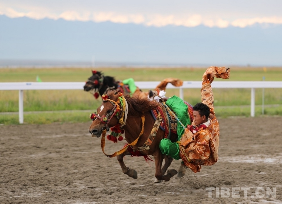 圖為康巴馬術項目“跑馬懸體” 攝影:達哇才讓
