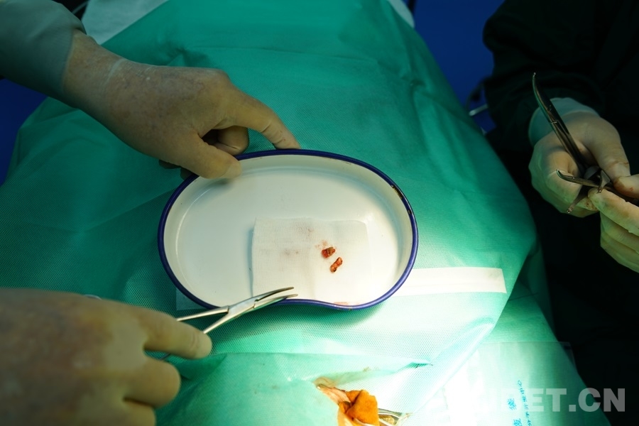 王貴懷、魏希發(fā)兩位專家于下午四點半左右從義診現(xiàn)場抵達白玉縣人民醫(yī)院,會同縣人民醫(yī)院院長李治宏,一起為患兒做了切除手術,異物成功取出,并在隨后安排了病理檢查。手術完成后,孩子父母為醫(yī)生們獻上哈達,表達自己的感激之情。