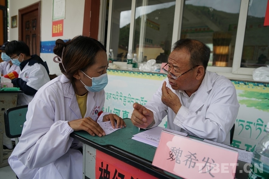 在協(xié)助義診過程中,四郎曲珍聽到很多老百姓表示醫(yī)生們不遠千里從北京過來,不僅辛苦為大家問診,還免費送藥,他們心里充滿了欣慰和感激??吹结t(yī)療專家們的盡心竭力和百姓們滿滿的獲得感,她對于這次活動的意義,也有很深的感受?!拔矣X得同心這樣的活動非常好。我們當?shù)蒯t(yī)療條件有限,又因為交通不那么方便,老百姓看病很困難。有了這次活動,大家不需要大老遠去找專家,也減輕了路上交通食宿等經(jīng)濟負擔。不僅如此,老師還可以一對一地指導我們當?shù)氐尼t(yī)護人員,幫助我們提升醫(yī)療技能,以后可以更好地為老百姓服務?!?nbsp;