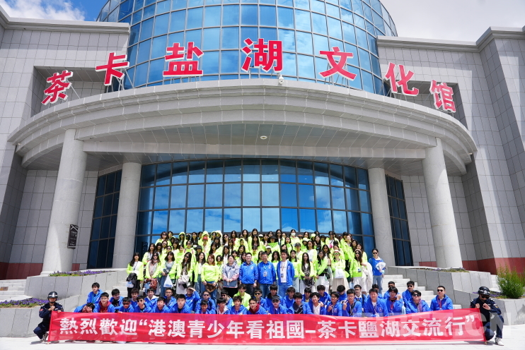 圖為香港青少年在茶卡鹽湖文化館外合影。攝影:趙振宇