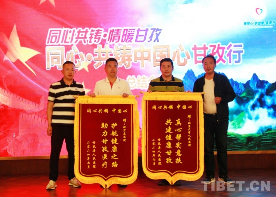 總結(jié)會上,甘孜縣有關(guān)領(lǐng)導(dǎo)向“同心·共鑄中國心”組委會贈送了錦旗,向醫(yī)療專家志愿者代表送上了感謝信;甘孜縣人民醫(yī)院向北京大學(xué)人民醫(yī)院和航空總醫(yī)院贈送了錦旗;醫(yī)療專家志愿者代表和志愿者代表分別談了活動參與感受和建言。