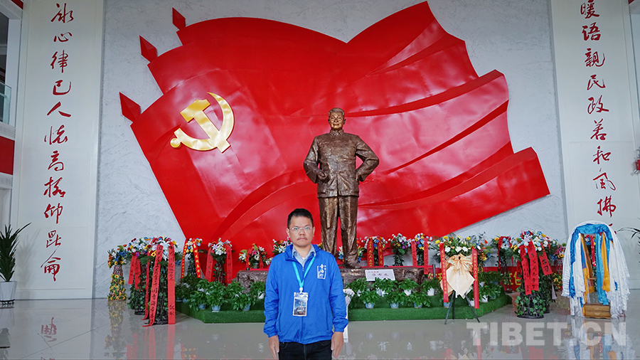 圖為青海省港區(qū)政協(xié)委員、本次研學(xué)團(tuán)副團(tuán)長王偉杰在尕布龍時代楷模紀(jì)念館。攝影:李泓慶